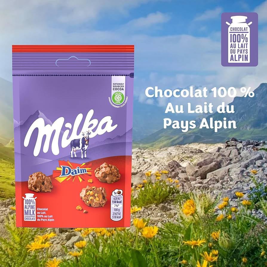 المصدر: تحتوي على كاكاو من مصادر مستدامة ضمن مبادرة Cocoa Life.المكونات الرئيسية: 100% حليب جبال الألب.بلد المنشأ: السويد 🇸🇪