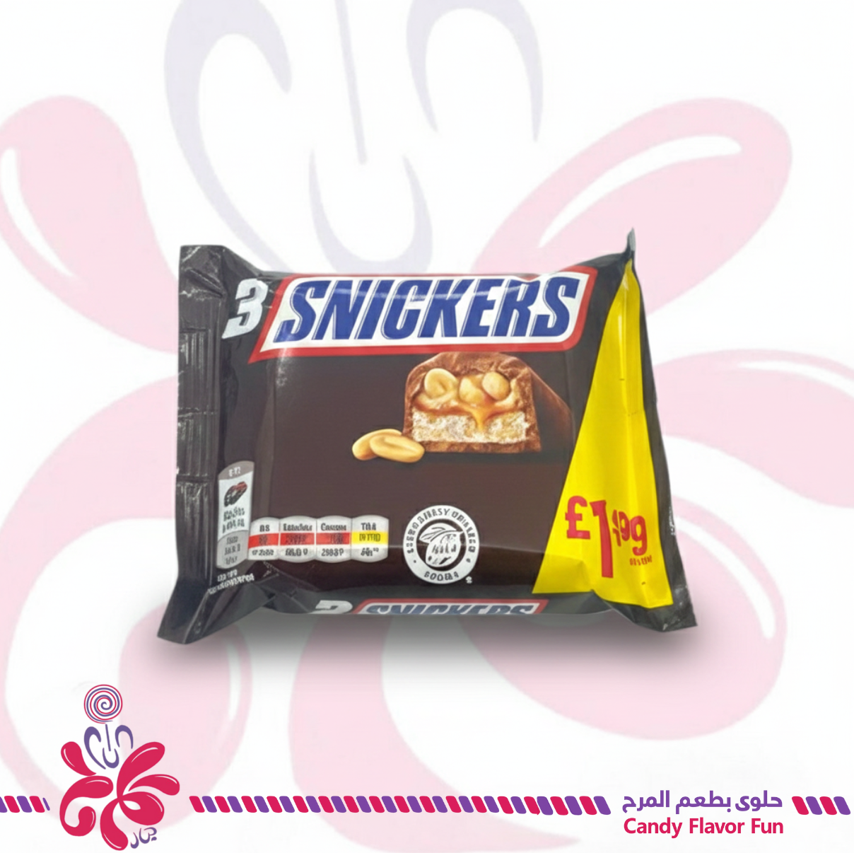 هذه عبوة من 3 قطع من شوكولاتة سنيكرز (Snickers).